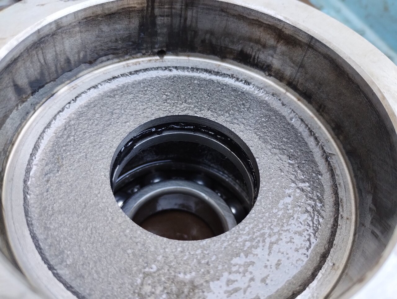 黒いゴミや散乱し、軸にも付着。。これは、、Xリングの劣化ですな。。